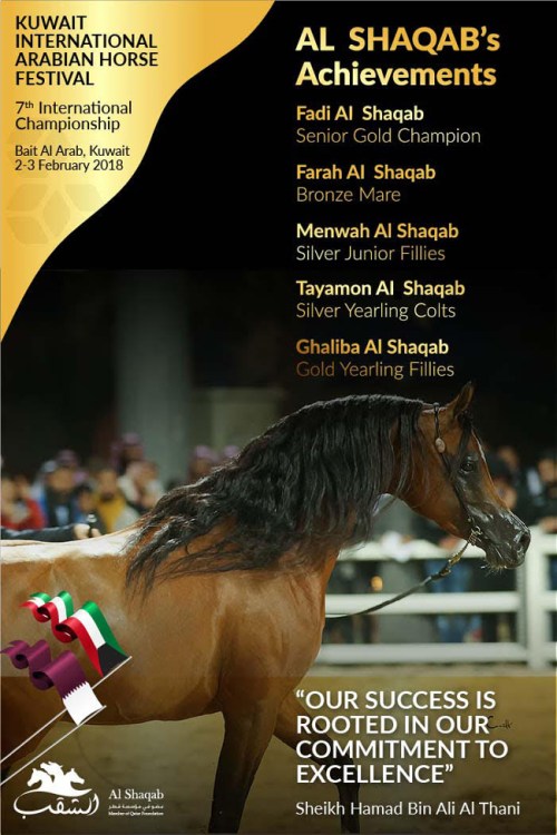 Anuncio realizado por AL Shaqab (Member of Qatar Foundation) con una de las fotos tomadas durante el prestigioso show Internacional de Kuwait